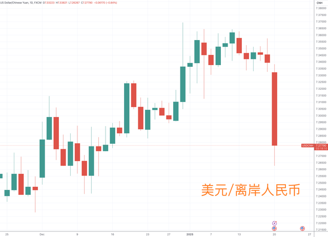 (美元兌離岸人民幣日線圖,來源:TradingView)這一輪美元大跌的源頭,是有美國媒體報導稱,特朗普政府不會一上台就對美國的貿易夥伴施加激進的關稅,而是會下令評估美國的貿易政策。