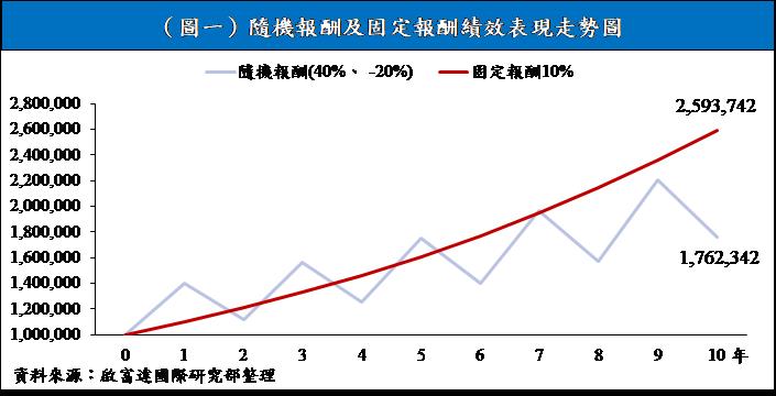 絕大多數的人在投資獲益上,無可諱言都希望暴利且快速就可以取得,最好是可以一夕致富,若此,那就等同是天上掉下來的禮物,造物主賜給予的樂透,但這對一般人來說是微乎其微、小之又小的機率。撇開此機率的發生,回到正常理性的判斷,我們絕大部份會選擇高報酬的獲益,而輕忽長期穩定的獲利效果。以下,啟富達研究部特別將這兩種獲利模式做一個比較,來說明長期穩定的獲利遠優於不穩定的投資效益,打破一般在投資上的迷失。