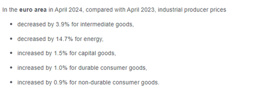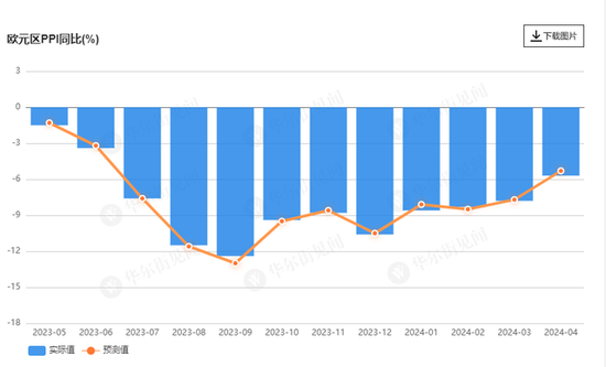 6月5日周一,歐盟統計局公布4月生産者價格指數(PPI)報告,歐元區4月PPI同比下降5.7%,降幅大于預期的5.3%,但降幅較前值-7.8%有所放緩,連續第十二個月下滑。