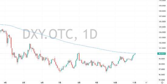 周二,美元指數亞太時段一度突破100大關,為8月1日來首次。