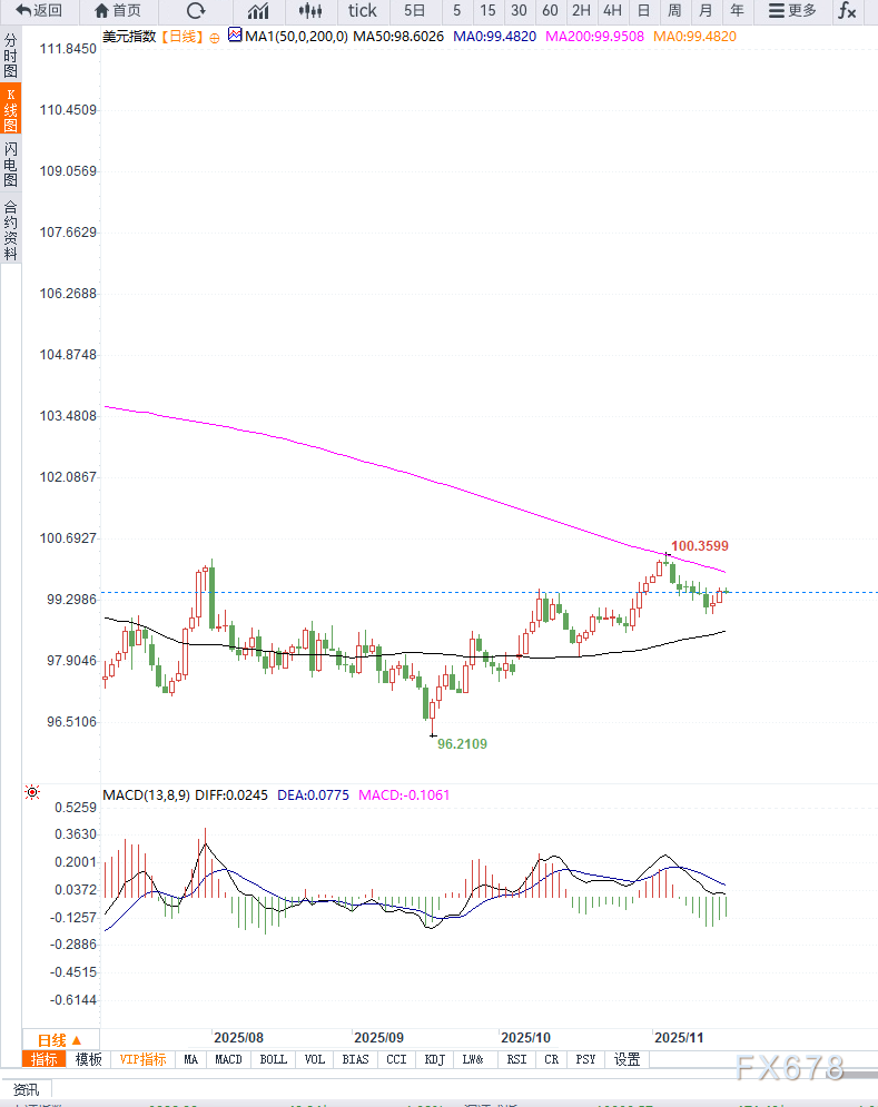 匯通財經APP訊——美元指數(99.60060.01450.01%, )(DXY)在週二亞洲時段圍繞 99.55 水準窄幅波動,整體走勢平穩, 反映市場在重大數據公佈前保持觀望。