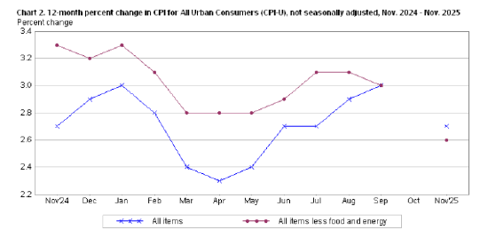 美國勞工統計局週四公佈的數據顯示,剔除波動性較大的食品和能源的核心消費者價格指數(CPI)11月同比上漲2.6%,而兩個月前的同比漲幅為3%。 11月整體CPI同比漲幅為2.7%。