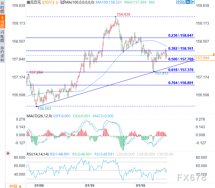 (美元兌日元小時圖,來源:易匯通)日期:11:14,美元兌日元交投於157.96/97。