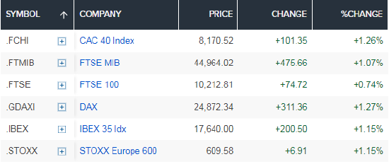 倫敦股市開盤時,泛歐斯托克 600 指數上漲 1.2%。