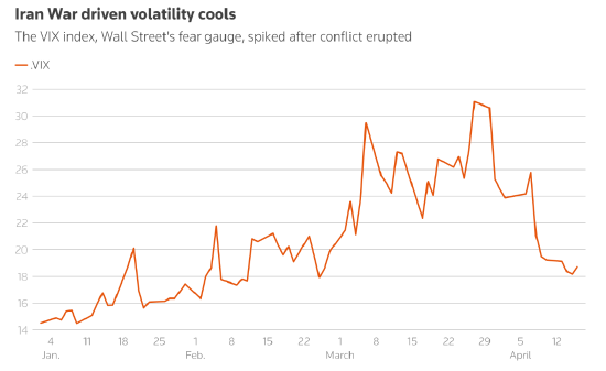 市場狀況表明,更多的交易可能會重新出現。 在2月底衝突爆發后,CBOE波動率指數(衡量投資者焦慮程度的密切指標)飆升,但在4月份已降至20點以下。 交易商們說,該指數通常被稱為華爾街的“恐懼指數”,當它低於20的水準時,被認為是市場穩定、壓力較小的信號。