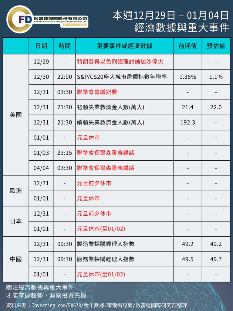 本週 12/29 – 01/04 重要事件與數據