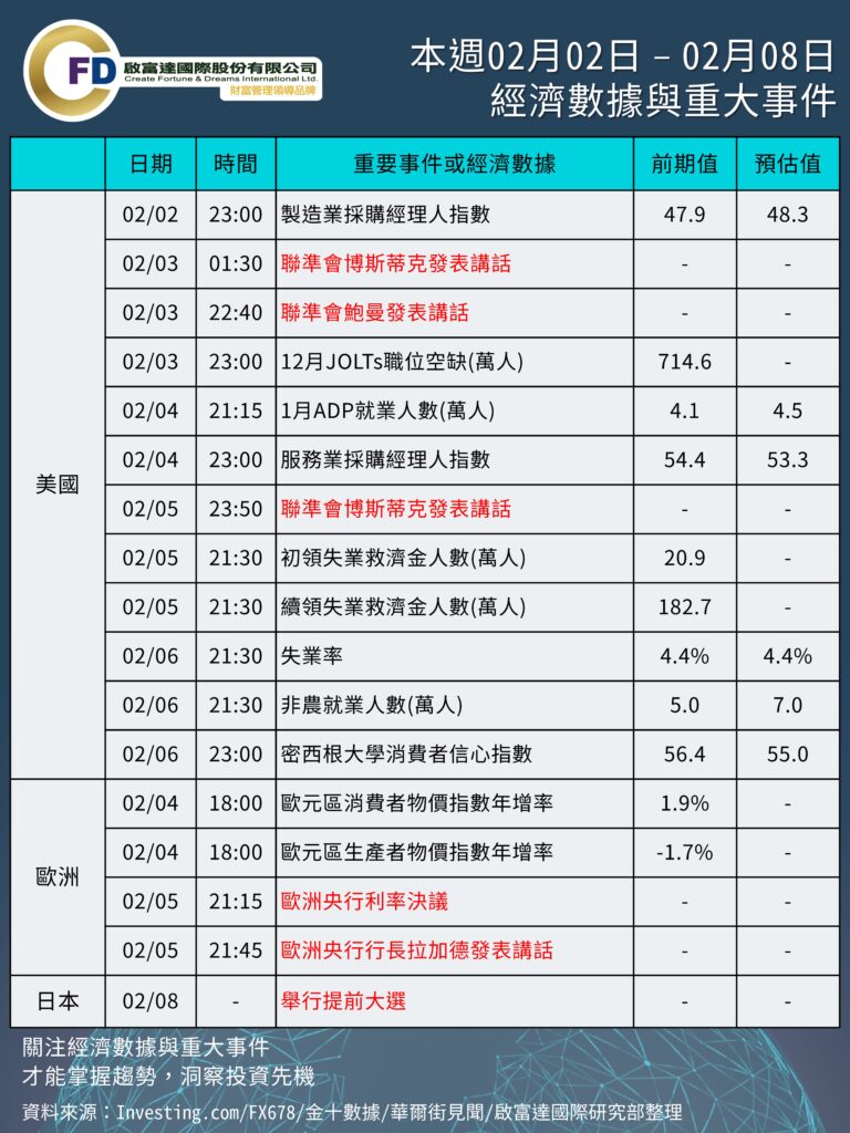 本週 02/02 – 02/08 重要事件與數據