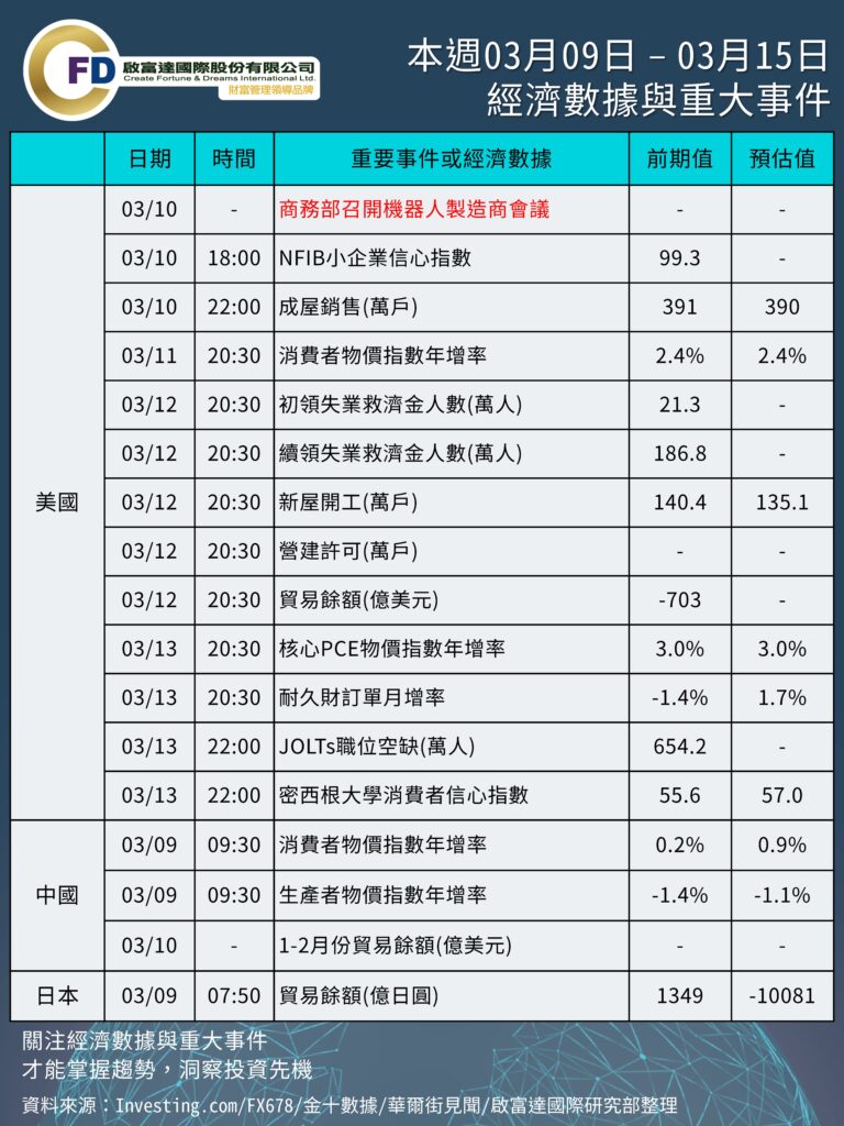 本週 03/09 – 03/15 重要事件與數據