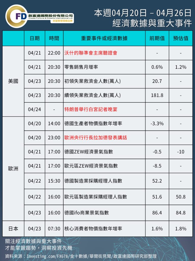 本週 04/20 – 04/26 重要事件與數據